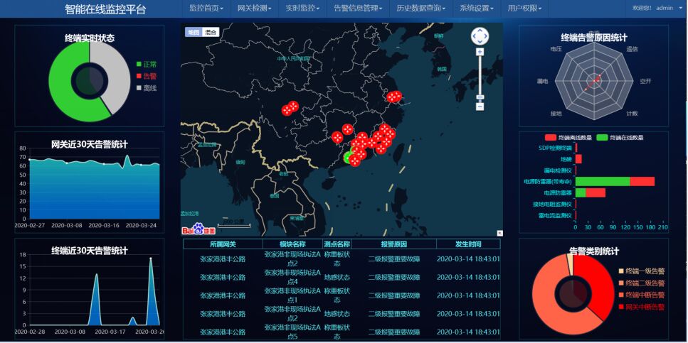 實時監測:實現對SPD浪涌保護器、接地電阻、避雷針等監測對象遠程在線實時檢測,發現故障秒級上報,即時完成報警,方便運維人員及時處理;